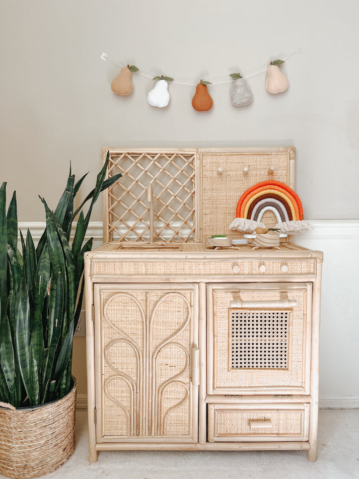 Presenting the Hope Rattan Kitchenette, a beautifully designed play kitchen that brings a touch of vintage elegance to your child's imaginative play. With its fine rattan craftsmanship, this kitchenette is both a playful toy and a gorgeous piece of decor.