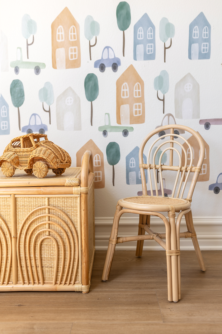 Introducing the Little Bianca Toddler Chair — a whimsical, joy-filled seat that will light up your toddler's room with the charm of a sunlit arc in the sky. Each chair is handwoven with the utmost care from sustainable rattan, featuring a playful arched pattern on the backrest that captures the essence of a rainbow. This toddler-sized chair is crafted to support your little one in all their activities, whether they're drawing, playing, or imagining. The sturdy and stable design ensures safety during use, while the rounded edges and smooth rattan surface offer a touch of gentle comfort suitable for tender hands.
