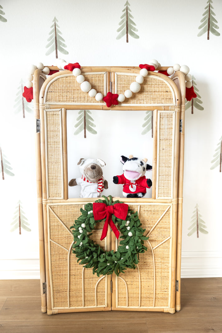 Step into a world of imagination with the Timeless Adventures Rattan Puppet Theater. This beautifully crafted puppet theater, made from high-quality, sustainably sourced rattan, creates the perfect stage for little ones to bring their stories to life. Its classic, natural design complements any room, making it both a decorative piece and a playtime essential.