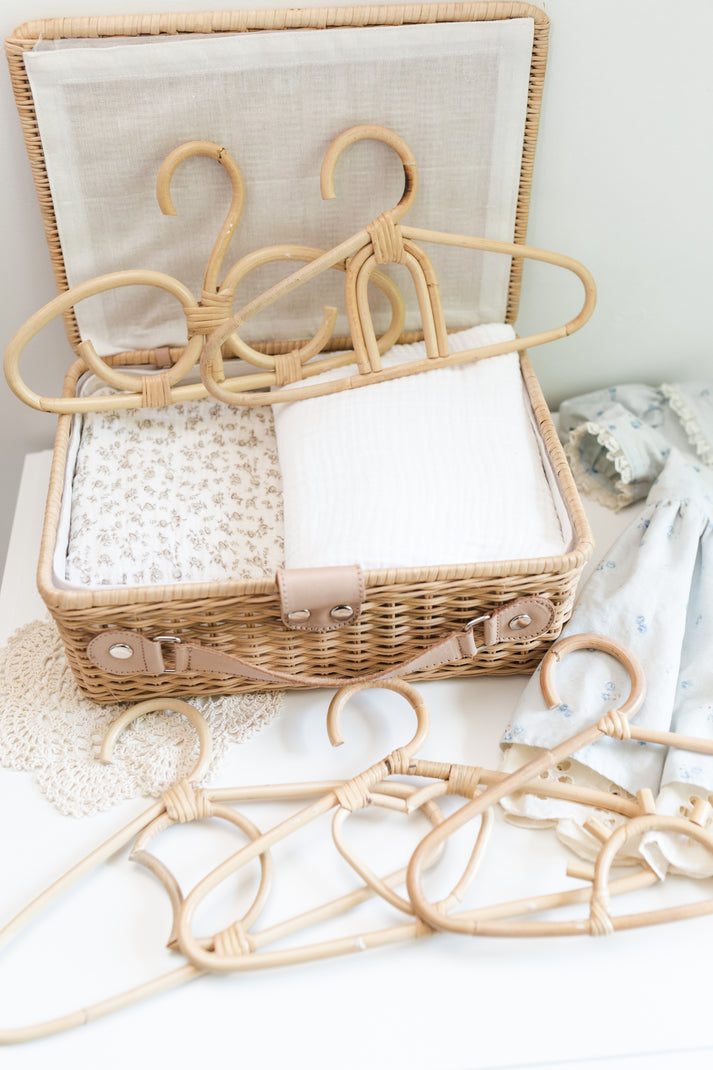 Enhance your child's wardrobe with our charming 5-piece Wardrobe Hanger Set, where each hanger is a delightful work of art. These unique hangers are meticulously handcrafted from durable rattan, offering both beauty and practicality.