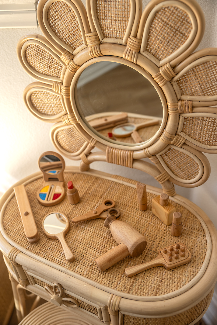 Introduce your little one to the world of imaginative play with our beautifully crafted Wooden Salon Accessory Set. This charming set is designed to encourage creativity and develop fine motor skills while providing endless hours of pretend play.