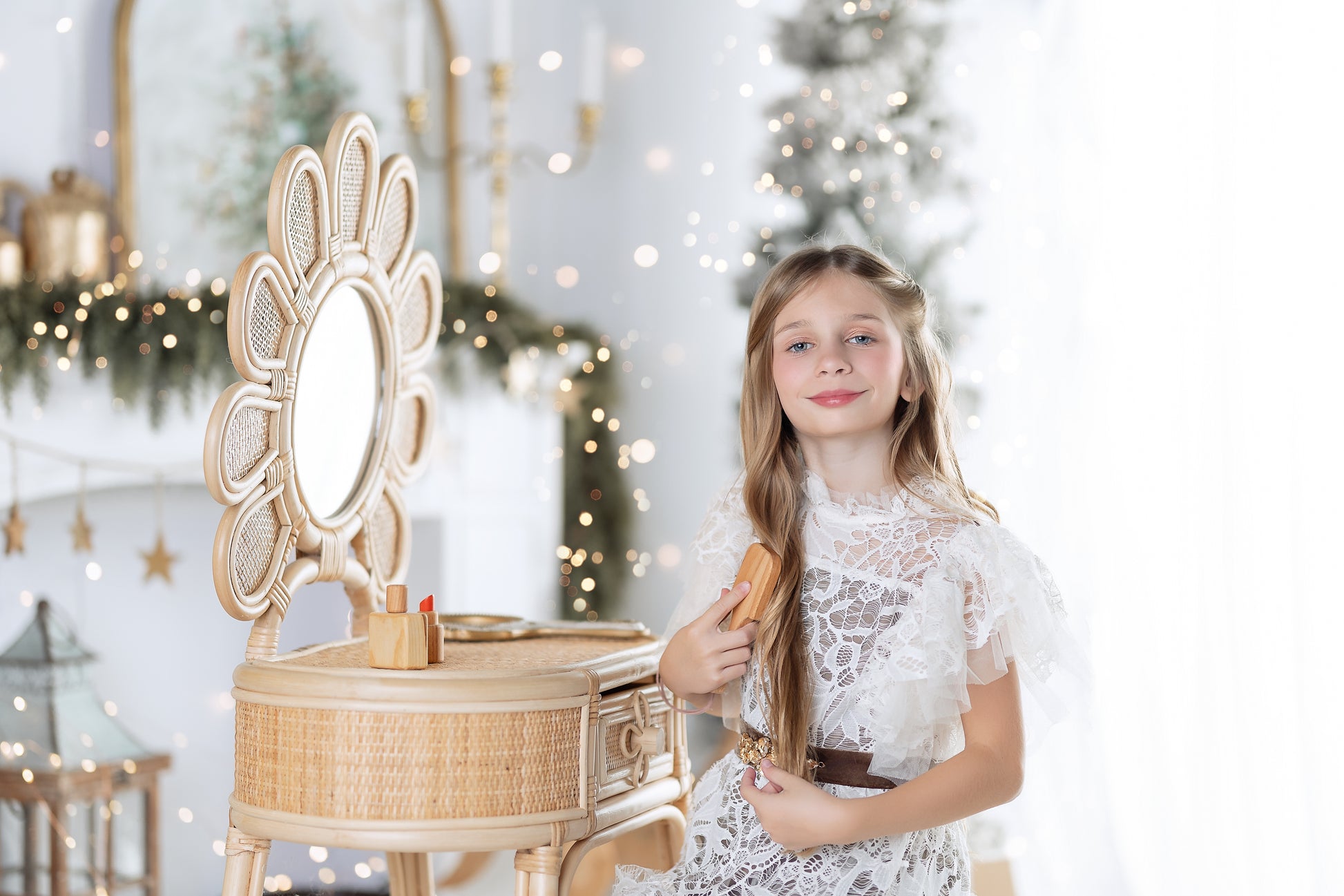 Introduce a touch of whimsy and elegance to your child's room with our Delightful Daisy Children's Vanity Set. This enchanting vanity set inspires imaginative play, and provides a special place for your little one to explore and express their personal style.